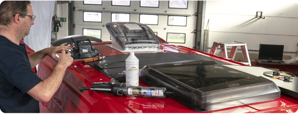 • SAT-Anlage, Solarmodule & Co. sicher verkleben. So, dass sie auch bei hohem Tempo auf der Autobahn sitzen bleibt – qualitätssicher und dauerhaft.