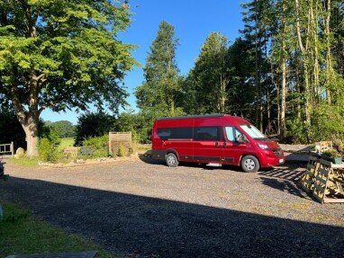Idyllisch gelegener privater Stellplatz auf einer Wiese mit wunderschönem Ausblick auf Felder