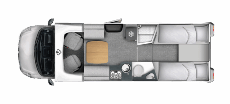 De L-keuken of compacte zijkeuken (afhankelijk van de indeling) biedt alles wat je nodig hebt om zelf te koken op reis. Uitgerust met een 2-pits gaskookplaat, een ruime koelkast met vriesvak (142 liter), makkelijk toegankelijke bovenkasten en functionele lades met soft-close, kun je hier efficiënt werken. Het slijtvaste werkblad en slimme details zoals een stekkerdoos of optionele oven retrofit ronden deze praktische keuken af.