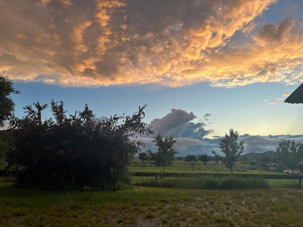 "Wir hatten ein wundervolles verlängertes Wochenende auf Rosies Stellplatz. Der Garten ist sehr liebevoll angelegt und wir haben uns sehr wohl gefühlt. Es war alles da von Strom über Wasser und sogar ein Ökoklo. Es hat uns nichts gefehlt. Rosie ist eine sehr nette und offene Gastgeberin, die uns sogar noch frische Blumen auf den Tisch gestellt hat. Von unserem Platz hatten wir einen schönen Blick in die Natur und auf die untergehende Sonne. Wir kommen auf jeden Fall wieder."
