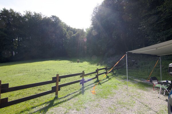 Auf dem Hof gibt es noch mehr Stellplätze, aber der Waldrand liegt etwas abseits und ruhig. Es gab sogar einen Brötchenservice und obendrein viele tolle Wanderwege direkt vor dem Hof."