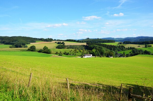 Hier liegt Ihnen das Melbecketal, in dem sich die Melbecke durch sanfte Wiesen schlängelt, zu Füßen.