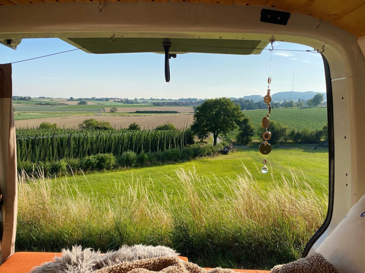 Kommen Sie und entspannen Sie sich inmitten der grünen Hopfenfelder Flanderns.