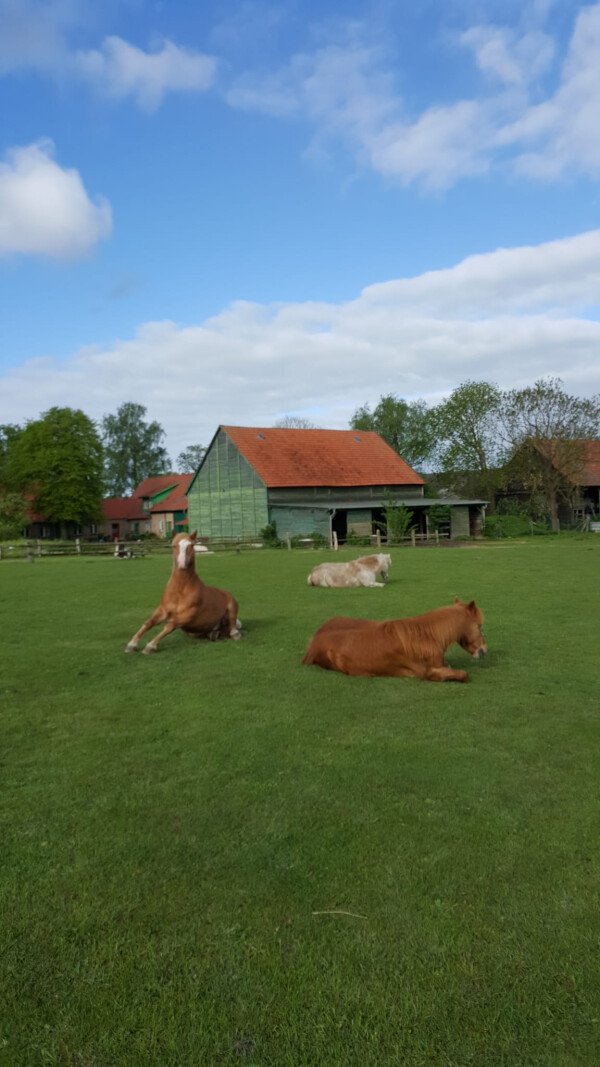 Hallo AlpacaCamper! Der Stellplatz befindet sich auf einer Koppel direkt an unserem Hof. Ihr hab hier eine schöne Aussicht über die angrenzenden Felder und Koppeln. Reitstunden könnt ihr leider nicht buchen. Aber natürlich gerne uns bei der Arbeit mit den Pferden und anderen Tieren zusehen. In der Nachbarschaft, angrenzend zu unseren Koppeln, könnt ihr auch Nandus, Kühe, Schafe, Puten, Hühner und Enten beobachten.  Der vorhandene Spielplatz kann auch gerne von Ihren Kindern mitgenutzt werden.