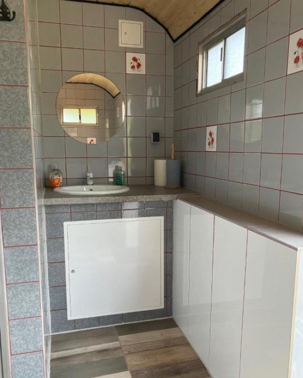 Sanitärbereich in unmittelbarer Nähe und eigenen Stromanschluss sowie die Entsorgungsstadion für Grauwasser und Chemie Toilette.