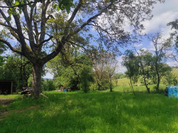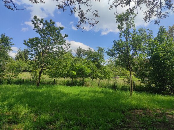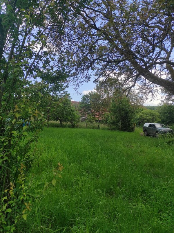 Der Stellplatz ist auf einem Freizeit-Grundstück unter einem riiiiesigen Walnußbaum. Als Untergrund gibt's nur Wiese. Die Zufahrt ist zum größten Teil geschottert.
