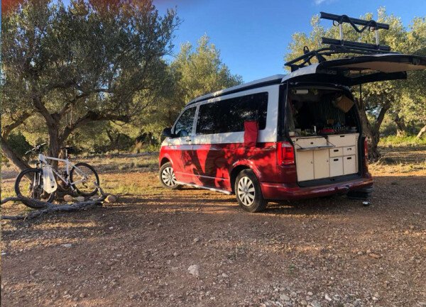 Camper stehen hier auf einer geraden, weiträumigen Fläche zwischen Olivenbäumen. Eine Dusche und ein WC, sowie WLAN sind in unserem kleinen Ferienhaus nutzbar, welches etwa 150 Meter vom Platz entfernt ist (nicht barrierefrei).