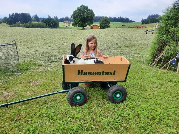 Kälbern, einem Stier, Schafen, Hühner, Hasen und Katzen und einem wunderschönen Rotwildgehege.