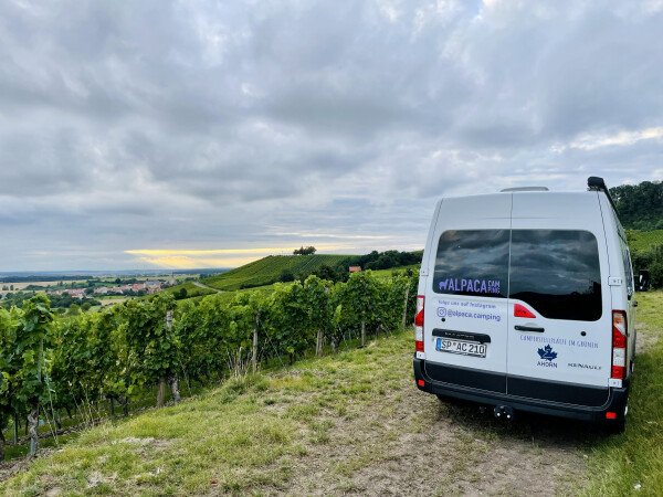 Hier könnt ihr den tollen Weitblick über die Weinberge genießen, tolle Sonnenuntergänge inklusive. Direkt neben dem Stellplatz befindet sich eine schöne Sitzgelegenheit, perfekt fürs gemütliche Abendessen. Zudem könnt ihr die Madonna-Statue bestaunen.