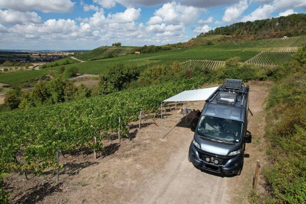 Sehr nette Gastgeber - und für alle Zweifler (wie mich): Der Stellplatz ist wenn vorne belegt ist tatsächlich nur mit Allrad zu erreichen; oder durch reden mit netten Nachbarn. Für Dachzelte ein bisschen wenig Platz, aber nach Absprache mit dem Weingut kann man sich auch schräg stellen um mehr Platz zu bekommen."