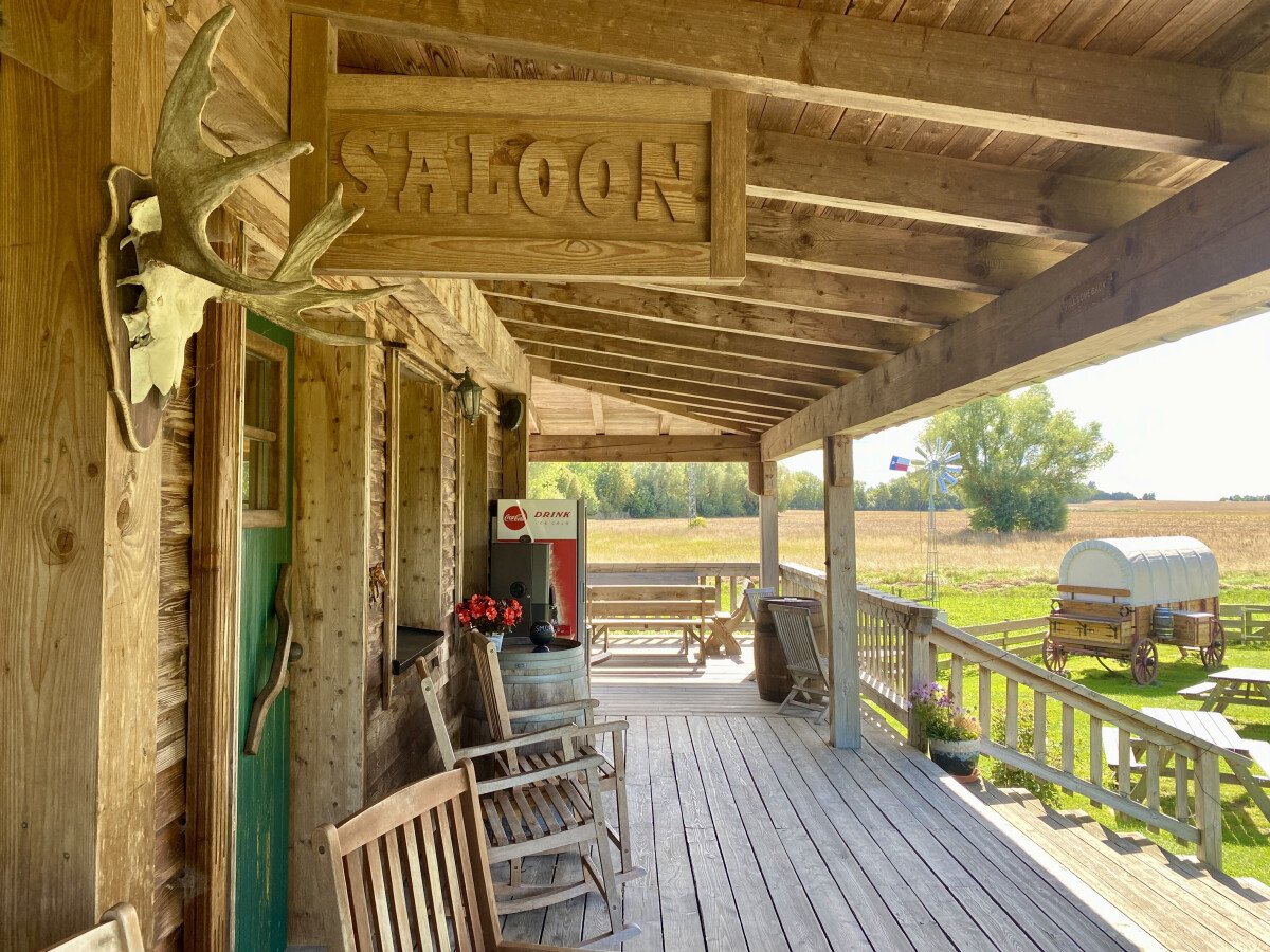 Auf der Ranch, einer Ferienanlage im Westernstyle, finden Sie unseren kleinen, ruhigen und idyllischen Campingplatz. Weiterhin befinden sich auf der Ranch ein Texas Saloon, welcher abends als Bar geöffnet hat, 3 Ranchhäuser und unser kleiner Streichelzoo. Die Ranch befindet sich nur 300 m vom Saaler Boden mit Badestelle und Hafen entfernt in welchem auch unser führerscheinfreies 10-PS Mietboot liegt. In 3 km Entfernung befindet sich das Saaler Wassersportcentrum, wo Sie surfen und kiten können. Dort werden auch verschiedene Kurse angeboten. Die Ostseestrände erreichen Sie in wenigen Autominuten oder wer es etwas sportlicher mag, auch mit dem Fahrrad.