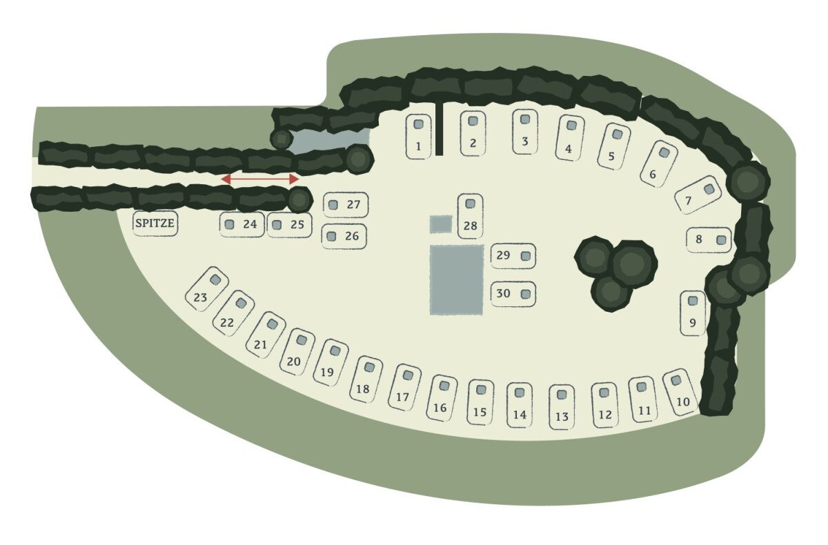 Unser kleiner, feiner Wohnmobilstellplatz bietet dir 30 Stellplätze mit ausreichend Platz (ca. 4x6m) für dein Wohnmobil. Dieser Platz hat eine Länge von 8 Meter.