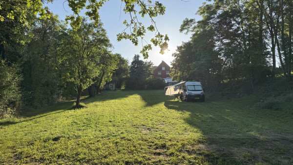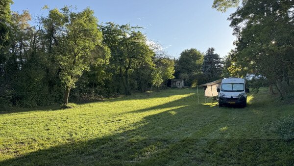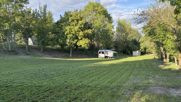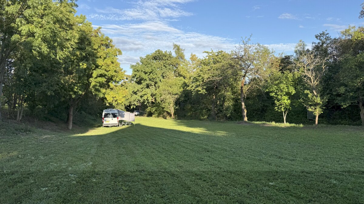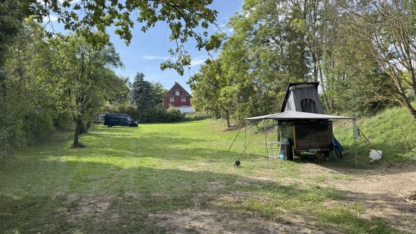 Die Wiese bietet genug Fläche und Privatsphäre. Weiter oben wird die Wiese etwas schräg, sodass unter Umständen mit Auffahrrampen gearbeitet werden muss. Es ist unsere erste Saison, daher gibt es noch kein Strom und Wasser. Oder andere Annehmlichkeiten. Wir arbeiten aber dran, dies in 2025 anbieten zu können. In dringenden Fällen finden wir sicher eine Lösung.