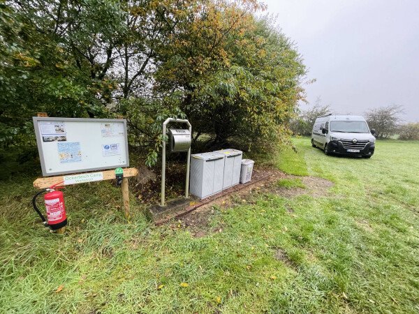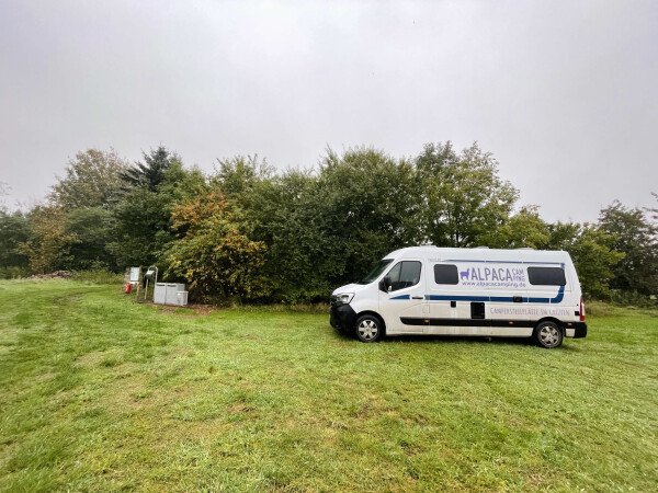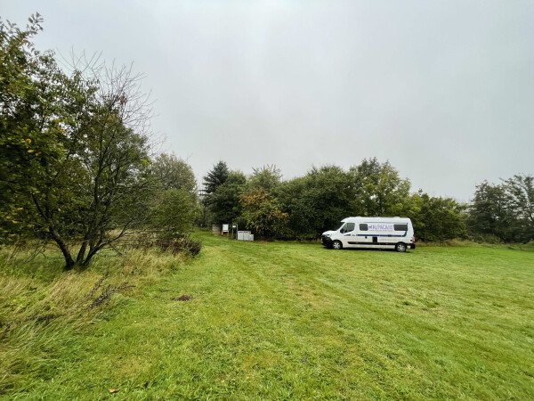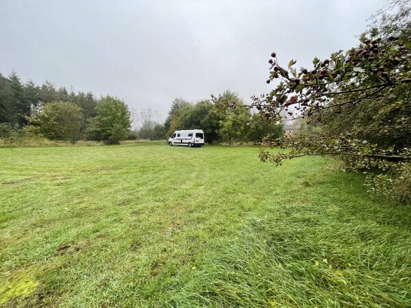 Die kurz gemähte Wiese ist auch bei Regen befahrbar und bietet genug Platz, ca ½ ha. Wasser sowie Müll und Brauchwasser Entsorgung sind vorhanden.