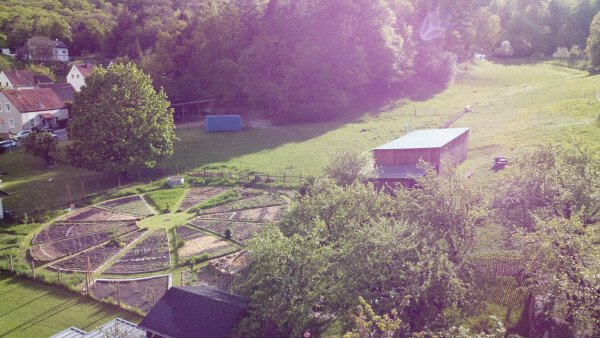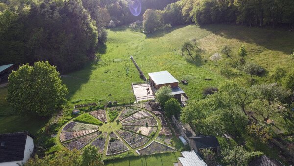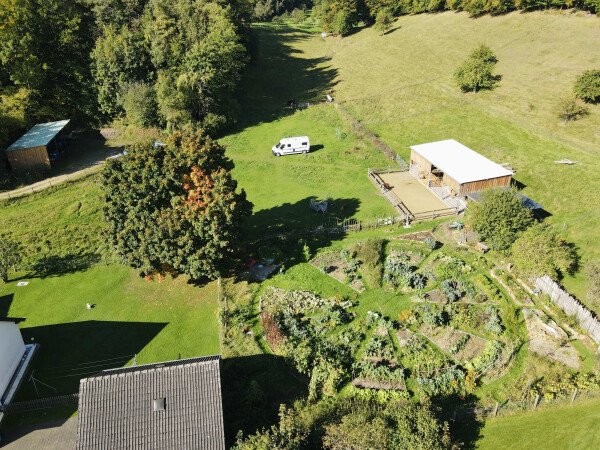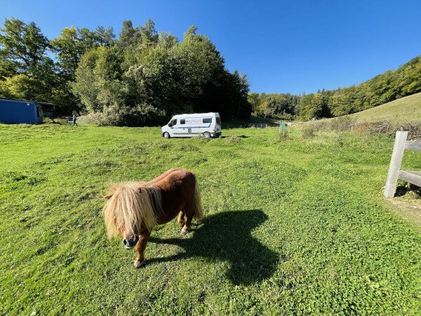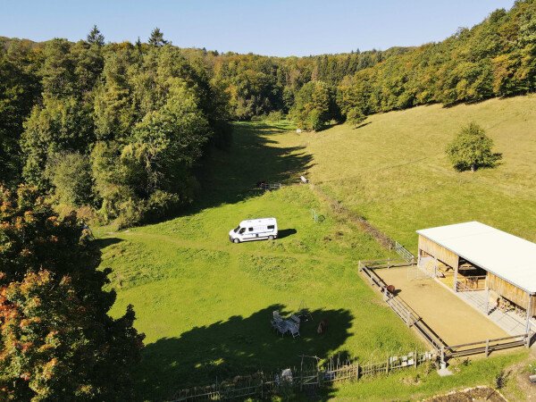 Der Stellplatz liegt auf unserem Hof in idyllischer Umgebung am Waldrand mit Streuobstwiesen. Der Streichelzoo mit Ponys, Schafen, Zwergziegen, Hühnern und Kaninchen, sowie der große Permakulturgarten laden zum Entspannen und Genießen (und wer möchte auch gerne Mitarbeiten ;) ein.