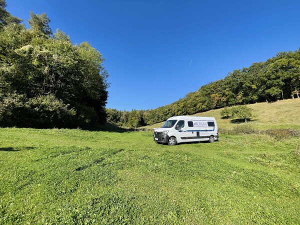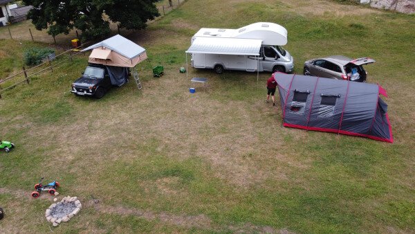 Der Stellplatz hat teilweise etwas Gefälle, daher sind Auffahrkeile empfehlenswert.