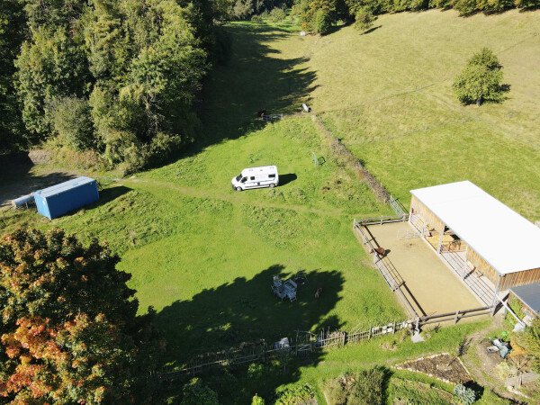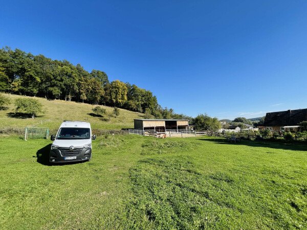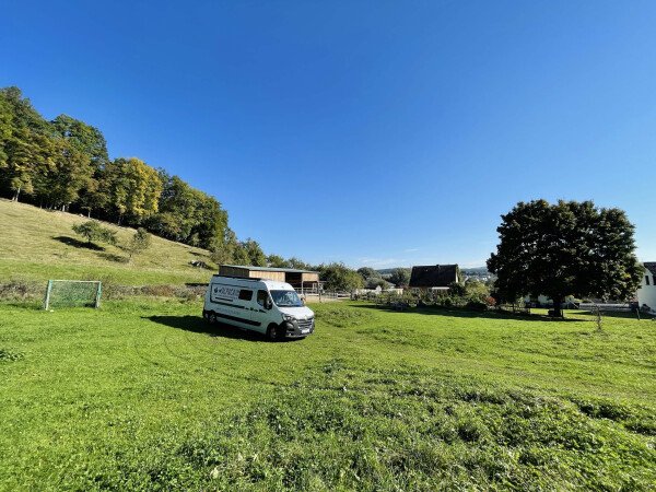 Sollte die Wiese zu nass und nicht befahrbar sein, ist eine Ausweichmöglichkeit auf einem befestigten Platz direkt nebenan verfügbar.