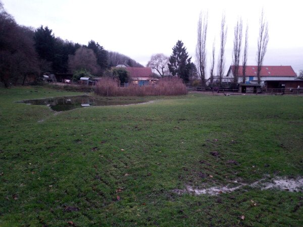 Der ganzjährig nutzbare Zeltplatz liegt im Stadtgebiet von Düsseldorf, auf einer Kuhwiese, 250 m vom Hof entfernt, direkt an der Düssel. Der Zeltplatz ist nur zu Fuß zu erreichen. WC und Wasser können am Hof benutzt werden und sind im Preis enthalten.