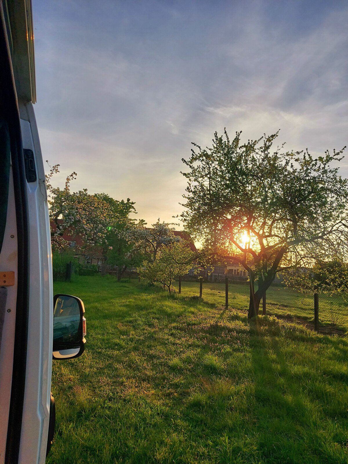 Ihr steht idyllisch auf unserer kleinen Obstwiese, im Schatten alter Bäume und in Gesellschaft von Gänsen und Hühnern. Hier könnt Ihr runterfahren und die Ruhe genießen.