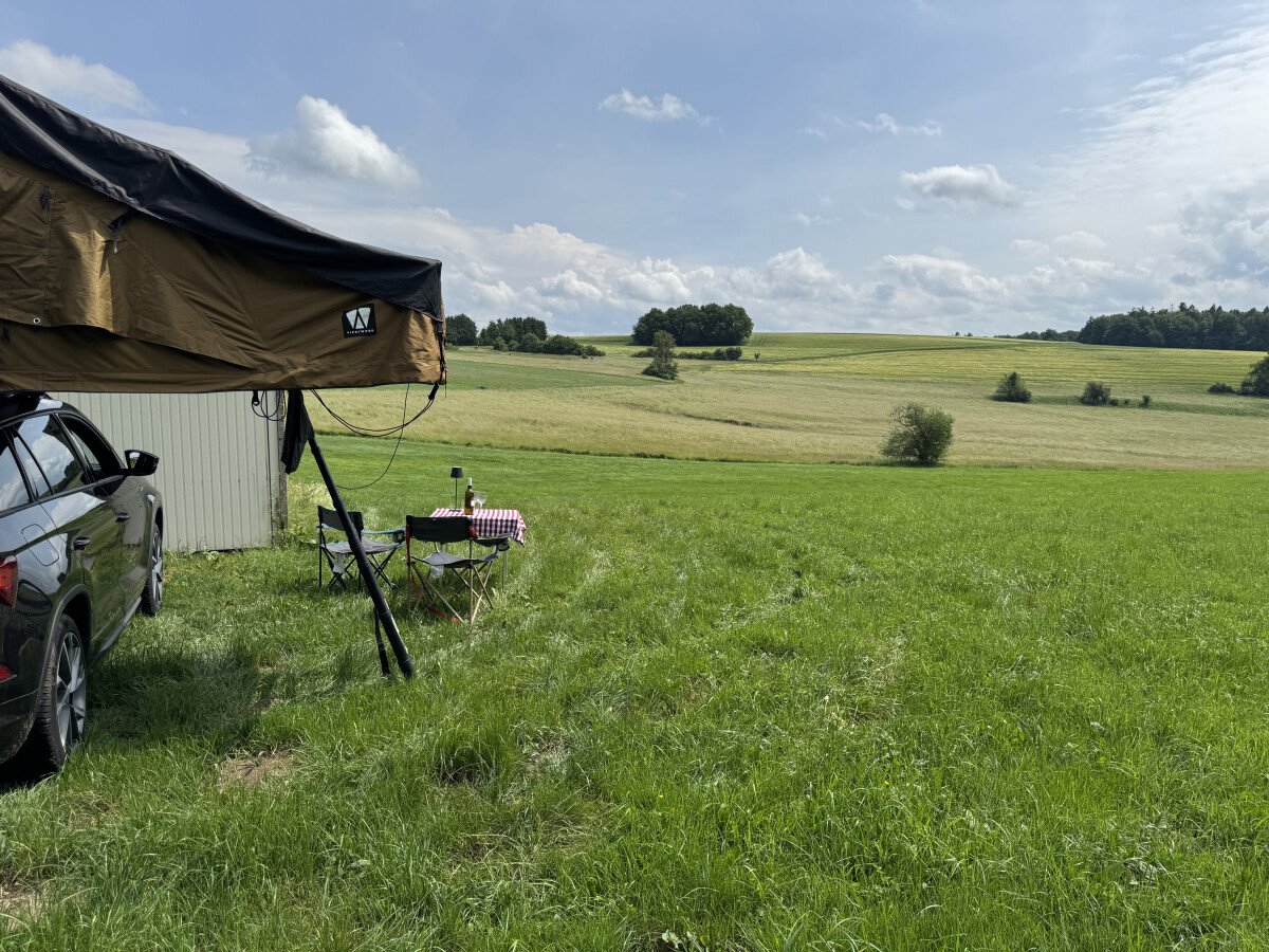 "Absolut empfehlenswerter Stellplatz bei einer frei stehenden Scheune. Die Lage ist sehr ruhig und idyllisch – perfekt, wenn man abschalten und die Natur genießen will. Man steht allein mit weitem Blick über Felder und Wiesen.