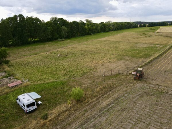 "Der Wiesenboden ist bei Nässe mit Vorsicht zu genießen. Wer Wert auf gerades Stehen legt, sollte seine Unterlegkeile einpacken. Ich habe mich zu jeder Zeit sicher gefühlt, da ich an der Schafweide in Sichtweite des Hofes stand. Die Zufahrt erfolgt über einen ca. 200 Meter langen Schotter-/Feldweg direkt auf den Platz. Ich traf auf einen sehr netten Gastgeber. Der Stellplatz liegt auf einer Wiese, die an eine Schafweide und mehrere Felder angrenzt. Hier ist man naturnah und trotz Straßennähe ist es sehr ruhig. Man hat einen tollen Weitblick. Honig aus der eigenen Imkerei kann vor Ort gekauft werden. Es gibt hier mehrere Stellplätze somit kann es sein, dass man einen Nachbarn bekommt und in Gesellschaft steht.
