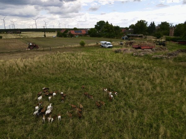 Der Stellplatz liegt direkt am Hof. Man kann die Bienen summen hören und um gut einschlafen zu können haben wir auch ein paar Schafe, die man gern zählen kann.🐑