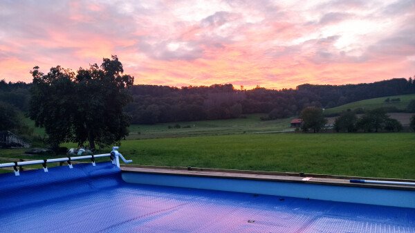 Unser Pool kann im Sommer nach Absprache mitbenutzt werden. Solar-Außendusche vorhanden, Strom und Wasser kein Problem. Es stehen 500 qm Rasenfläche zur Verfügung für maximal 3 Fahrzeuge. Zelten ebenfalls möglich.