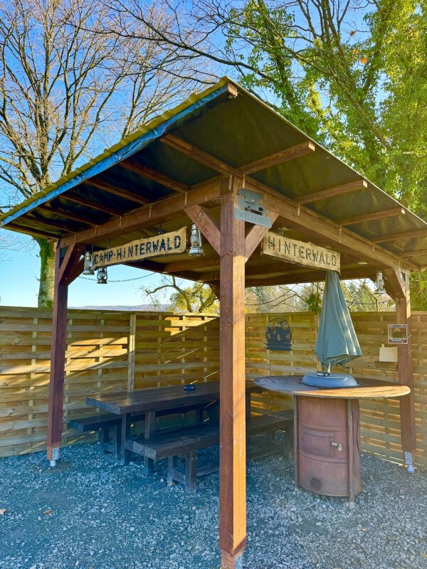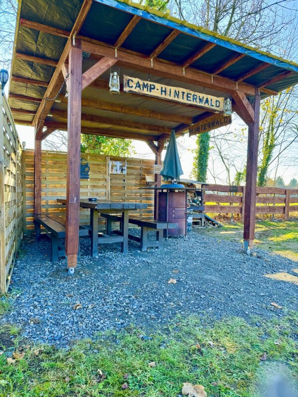 • Gemütlicher überdachter Grillplatz mit großer Sitzgarnitur und Sichtschutz