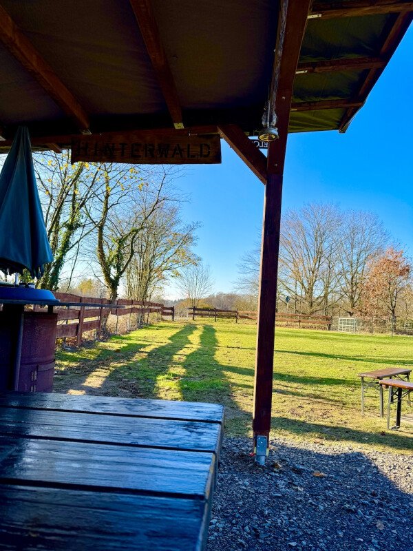 Mein Stellplatz liegt idyllisch auf einer Wiesenfläche am Ortsrand von Ruppichteroth im schönen Bergischen Land – umgeben von Bäumen und mit weiter Aussicht ins Grüne. Die Zufahrt ist unkompliziert, allerdings naturbelassen.