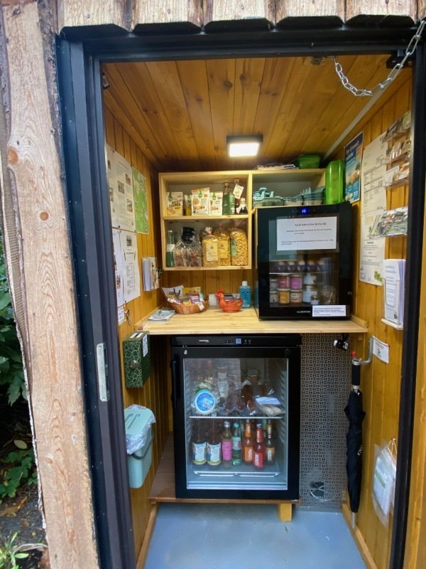 Frische Eier und mehr (Snacks, Getränke etc) täglich am gegenüberliegenden Eierhäuschen/Hofladen 07:00-21:00 Uhr geöffnet. Alkoholische Getränke aus der Region gibt es u.a auch gekühlt auf Nachfrage.