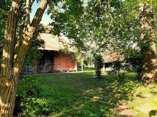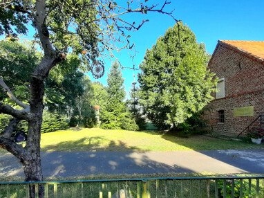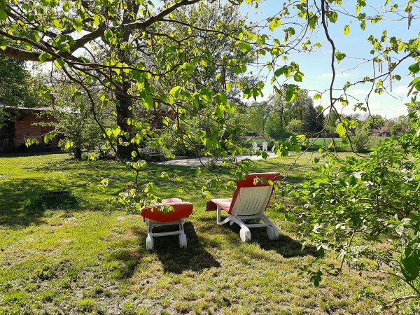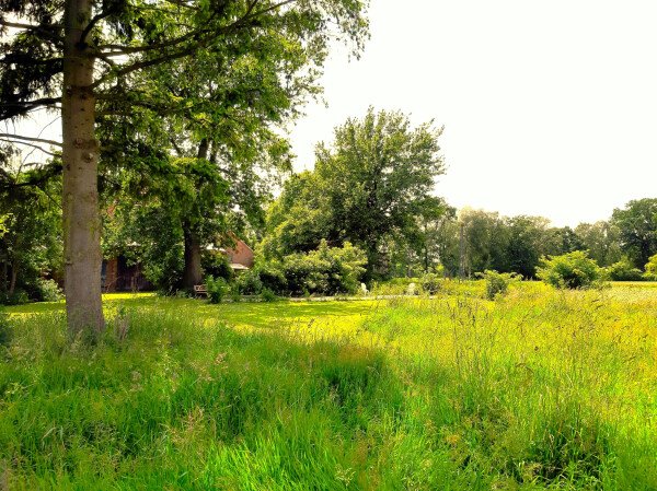 Das 4000m² große Grundstück mit Schuppen, Ställen, Wiese und mächtigen, alten Bäumen bietet verschiedene Sitz-, Bewegungs-, Kreativ- und Liegeplätze im Freien, unter Vordächern oder auch innerhalb der Scheune.