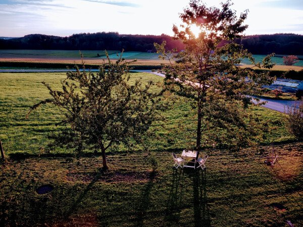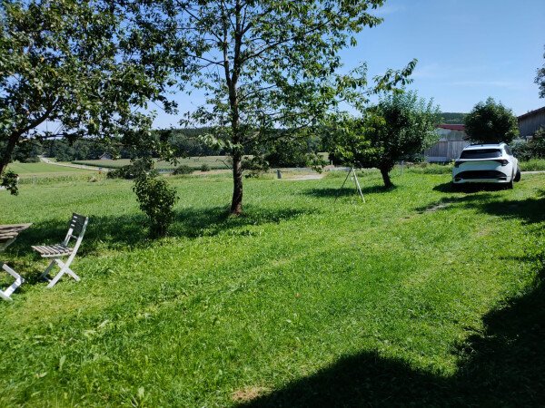 In Saulengrain, einem Ortsteil von Apfeltrach, gibt es unseren privaten Camping-Stellplatz, der Ruhe und einen schönen Ausblick ins Grüne bietet.