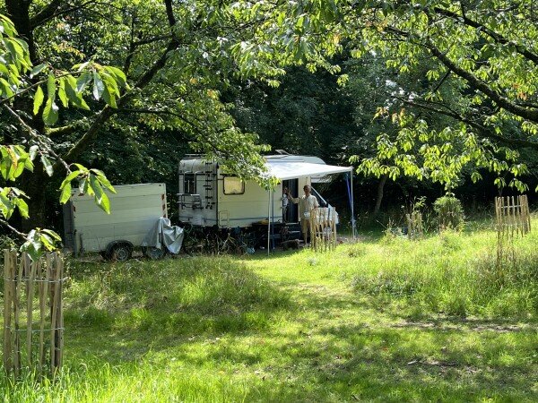 Auf unser schönen Obstwiese, idyllisch in einem historischen Bauernwald gelegen, bieten wir 2 Stellplätze.