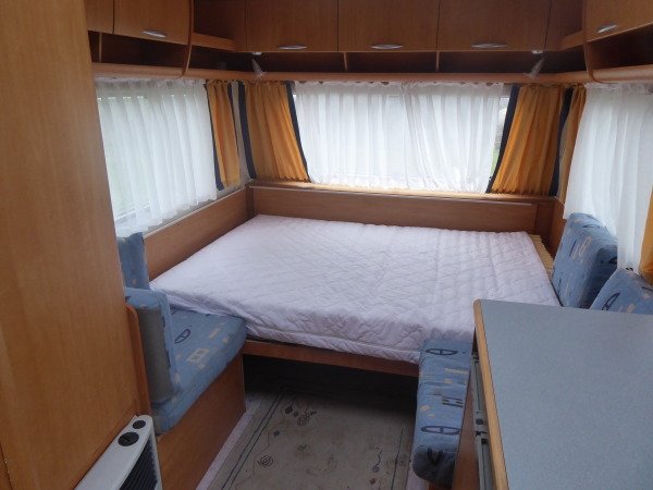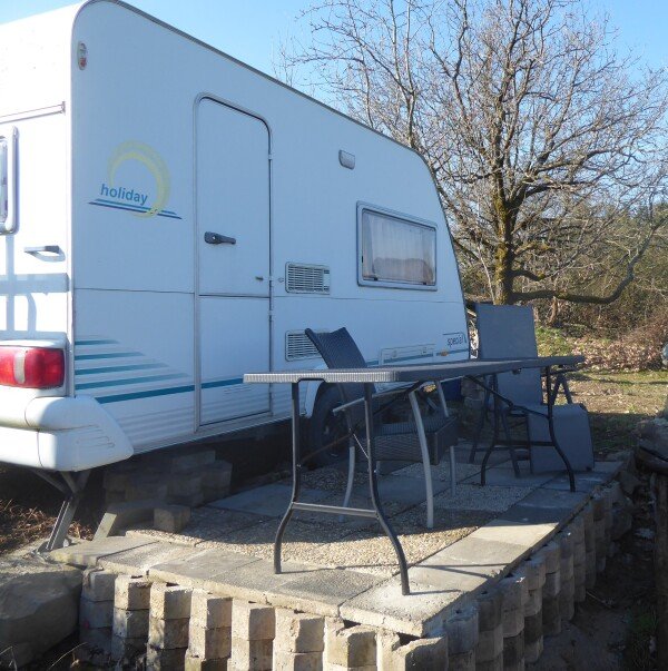 Wir bieten auch einen feststehenden Wohnwagen für 2 Personen an. Er ist ausgestattet mit Gas-Heizung, Kühlschrank und Herd. Toilette aussen/innen. Für die Reinigung sind 10,-€ (einmalig) vor Ort zu zahlen. Es ist 12 Volt Strom vorhanden. Bettwäsche stellen wir euch zur Verfügung.