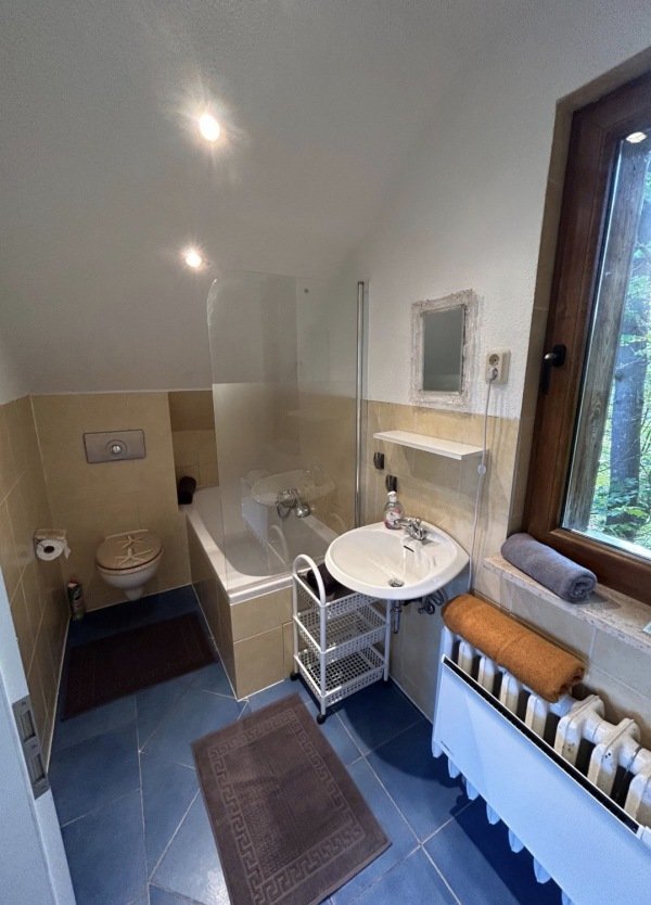 Des Weiteren ist eine Dusche ( Badewanne) und 2 WC vorhanden.