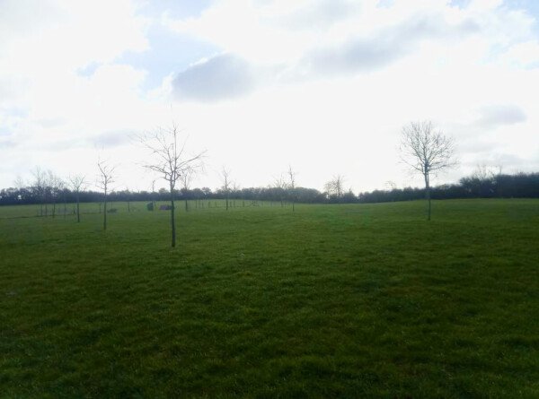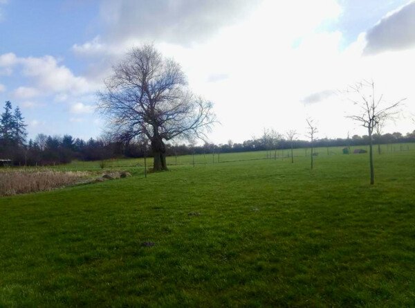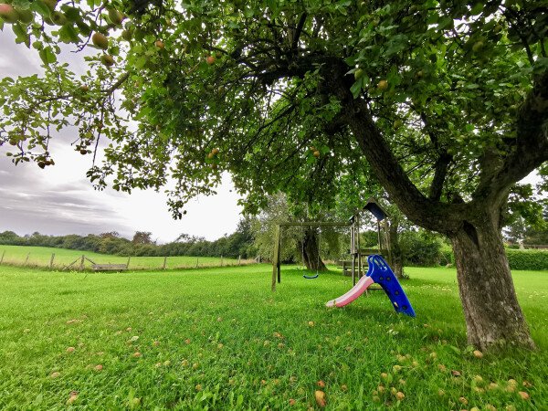 Ihr steht hier auf einer grünen Wiese, ca. 10.000 qm groß, freier Blick ins Gelände. Auf der Wiese stehen 60 alte, verschiedene Obstbaumsorten. Im Sommer könnt ihr hier gerne Früchte für den Eigenverzehr ernten. In ca. 500 m seid ihr an einer öffentlichen Badestelle am Fürstenauer See.