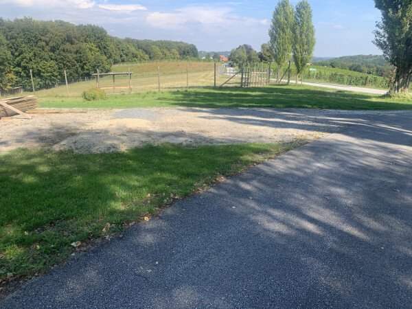 Der perfekte Blick auf die Riegersburg und auf den Grazer Hausberg (der Schöckel) macht unseren Platz zu einem idyllischen Ort. Sie finden hier viel Ruhe. Es gibt kaum Verkehr. Außer Traktoren und ein paar Autos fahren hier nicht viele Fahrzeuge.