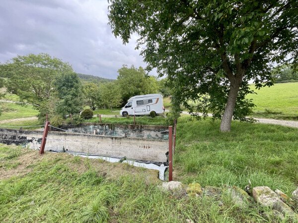 "Bei Regenwetter kommt man ohne Probleme zum Stellplatz. Der Platz ist am Rand des Dorfes, oberhalb des Gastgebers. Wir wurden sehr nett vom Gastgeber empfangen. Er gab uns Ratschläge für Wanderung oder Fahrradtour. Wir wurden eingeladen die Tiere im Stall zu besuchen. Das Schlemmereck vom Gastgeber ist der Hammer. Mega gute Steaks zum Grillen und gerade haben wir die mitgenommenen Bratwürste verputzt - ein Traum. Das sind mal richtige fränkische Bratwörscht. Mega lecker. Wir hatten absolute Ruhe und konnten Rehe beobachten. Ganz toller Stellplatz. Wir kommen wieder."