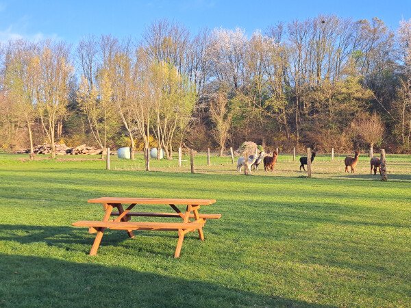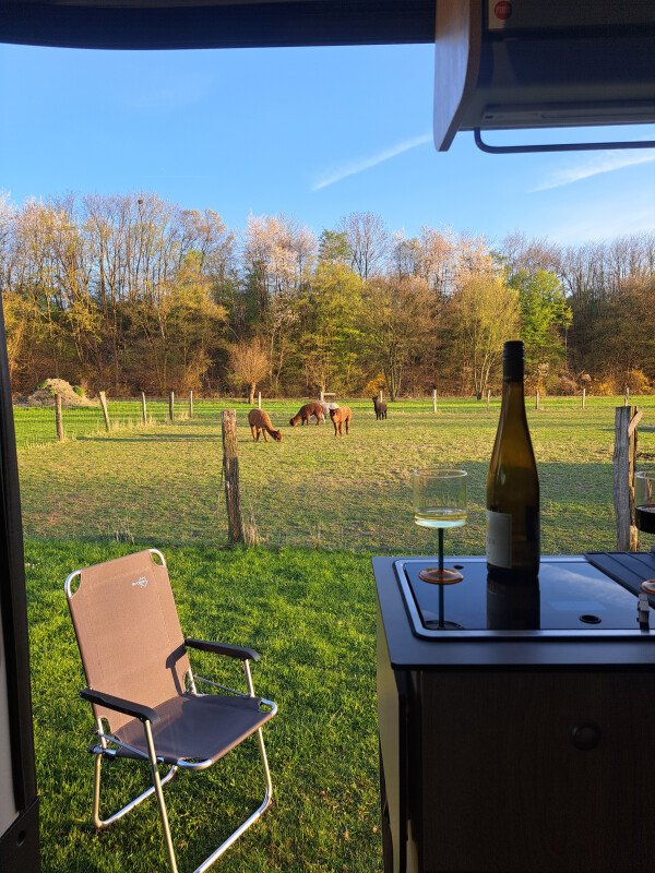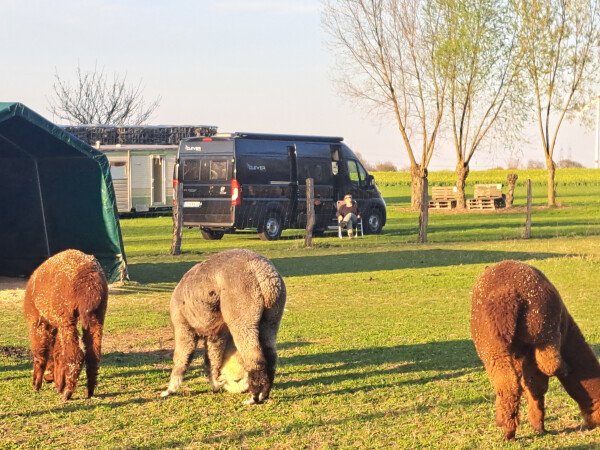 "Kurzum, Erwartung absolut übertroffen! An der Weitläufigkeit, Ruhe, Unklompliziertheit, Flexibilität, Bemühtheit und Freundlichkeit der beiden Gastgeber könnte sich so mancher teure Campingplatz ein Beispiel nehmen. Wir wollten eigentlich nach der Ankunft sofort auf die Fahrräder und unterwegs etwas Essen gehen, aber bei der Ruhe, der Entschleunigung am Alpacagehege und dem Angebot an Fleisch, Grillwurst, frischen Kartoffeln, Eis, … im Hofladen haben wir den Grill angeworfen und den ganzen Nachmittag auf dem Platz verbracht. Wir kommen wieder, danke euch beiden auch für die vielen Infos zu den Radtouren in der Umgebung."