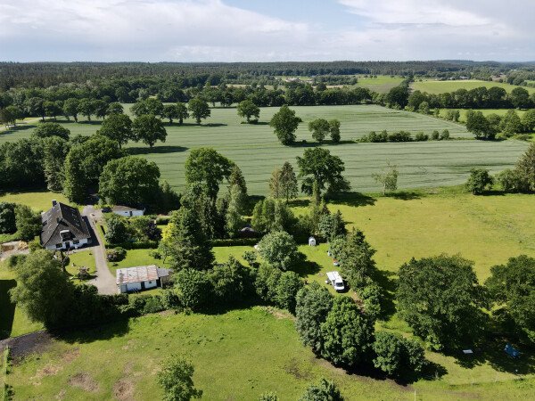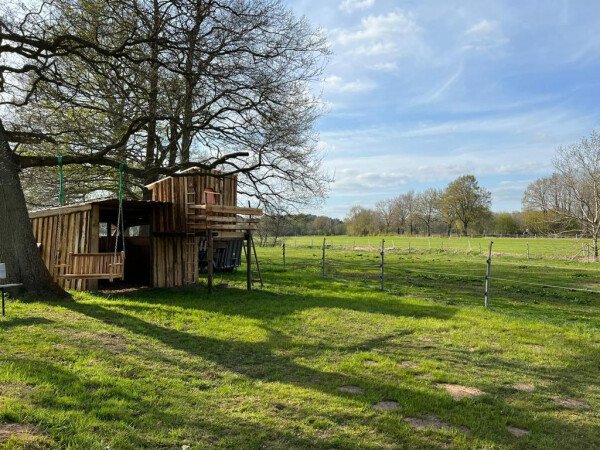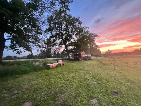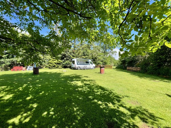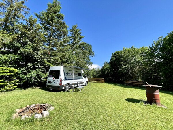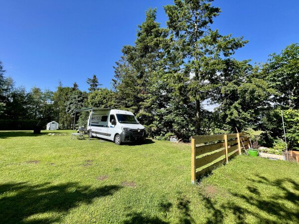 Du stehst hier direkt auf einer Wiese hinter unserem Haus, neben einer Pferdekoppel mit ausreichend Abstand. Du kannst hier gerne den vorhandenen Unterstand nutzen.