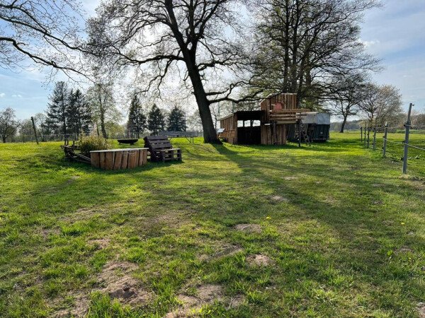 "Man steht auf einem festen Wiesenboden, welcher auch bei Feuchtigkeit befahren werden kann. Ich stand im hinteren Teil des Grundstückes auf einer sehr gepflegten Wiese in Sichtweite der Wohnhäuser. Zufahrt befindet sich (von der Hauptstraße aus) auf einen kleinen parallel dazu verlaufenden Weg. Unter den Bäumen biegt man in die teils geschottert, teils geteerte Zufahrt zum Grundstück ein. Nach ca. 200 Metern kommt man am Haus vorbei, dort geht es dann um eine enge 90 Grad Kurve auf die Wiesenfläche, die zum Platz führt. Fahrzeuge größer als ein Kastenwagen kommen hier nicht um die Ecke rum, wer mit Wohnwagen anreist, sollte diesen im Umgang beherrschen. Sehr nette Gastgeber, die den Platz mit viel Hingabe sehr camperfreundlich gestaltet haben und die alles Mögliche tun, damit man sich hier wohl fühlt. Der Platz liegt wunderschön eingebettet in dem hinteren Teil des großen Gartens, außer Natur und Vogelgezwitscher wird man hier nichts störenderes hören. Nebenan befindet sich eine übersichtliche Pferdekoppel mit ein paar Pferden. Für Kinder gibt es ein tolles Baumhaus mit Spielmöglichkeiten. Freunde des Feuers kommen hier egal ob mit der Feuerstelle oder der Feuertonne auf ihre Kosten. Frische Eier gibt es vor Ort. Auf dem Gelände gibt es zwei weitere Stellplätze die räumlich aber gut voneinander getrennt sind und man trotz Nachbarn seinen Aufenthalt ungestört genießen kann.