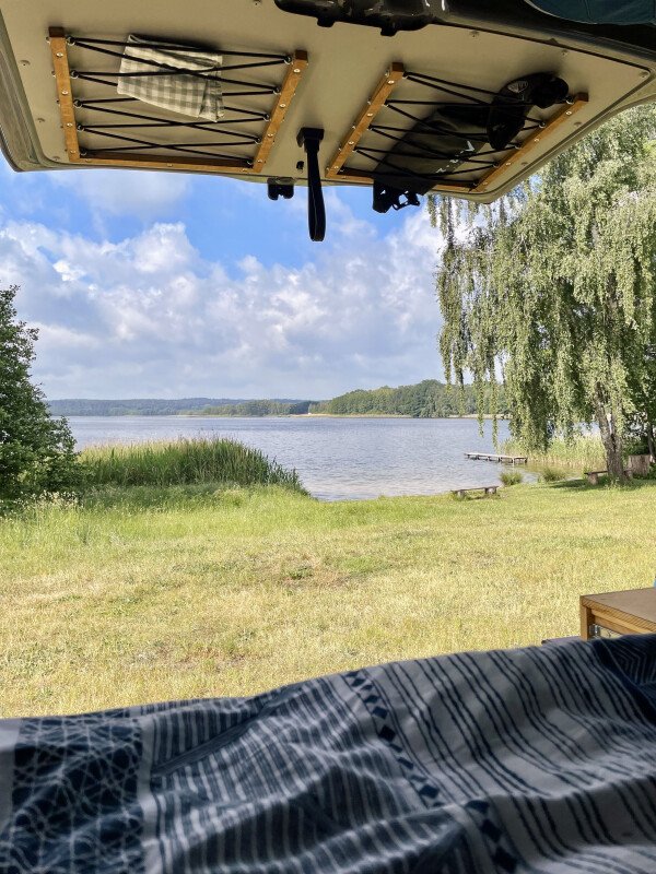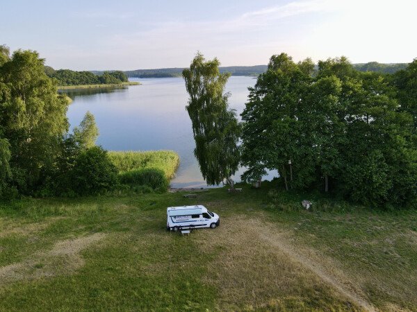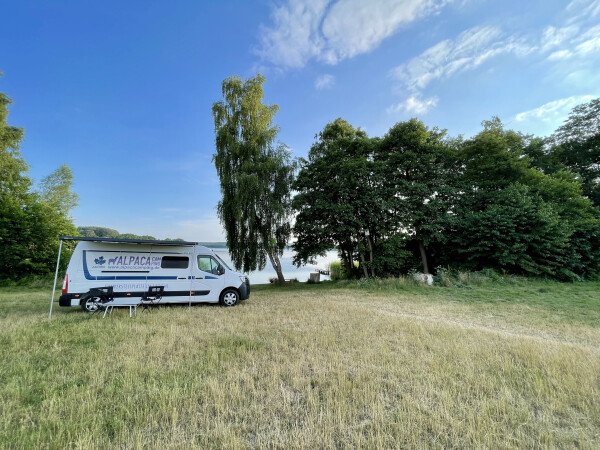 "Wir standen drei Tage an diesem wunderbaren Ort. Der Platz an sich ist ein absoluter Traum. Die Lage direkt am See gibt die Möglichkeit gleich zum Frühstück eine Runde zu schwimmen. Die gelegentlichen Badegäste haben nicht gestört. Wir hatten aber das Pech, dass eine Schulklasse auf Klassenfahrt täglich zum Baden vorbei gekommen ist. Das ist bestimmt nicht die Regel, aber andere Gäste haben uns bestätigt, dass diese Stelle am See immer mehr von Badegästen frequentiert wird. Besonders am WE."