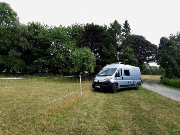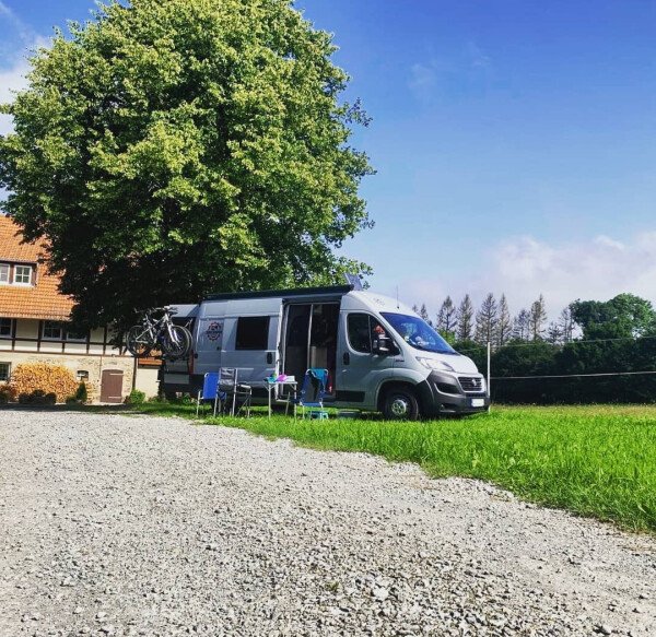"Der Untergrund des Platzes besteht aus Wiese - Keile sind erforderlich. Man hat einen wunderbaren Blick über die Koppel. Ich traf auf absolut fantastische Gastgeber und konnte einen tollen, offenen Bauernhof begutachten, da mir alles gezeigt wurde. Sogar beim Melken darf man dabei sein. Auf dem Stellplatz ist es sehr ruhig und er ist ein toller Ausgangspunkt für Radtouren oder Wanderungen. Ein Frühstückspaket ist gegen Aufpreis bestellbar. Ich habe mich hier jeder Zeit zu 100% wohl gefühlt.