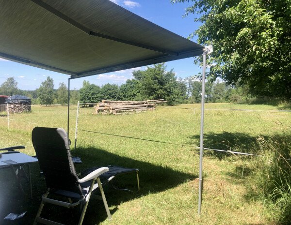 "Unkomplizierte und sehr freundliche Gastgeber. Ruhiger Stellplatz, dessen leichte Neigung gut auszugleichen war. Campinggestühl konnte eingepackt bleiben. Wir haben stattdessen Gartenbank und -stühle mit einem großen Tisch unterm lauschigen Blätterdach nutzen können.