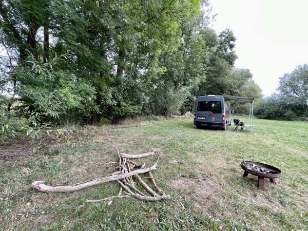"Mega schöner Platz. Wer Ruhe in der Natur sucht wird hier fündig. Nur ein paar Schritte zum Fluss, sehr idyllisch! Eine Feuerstelle und bereits klein gehacktes Feuerholz stehen bereit, haben wir aber nicht genutzt. Kommen sicher wieder!"