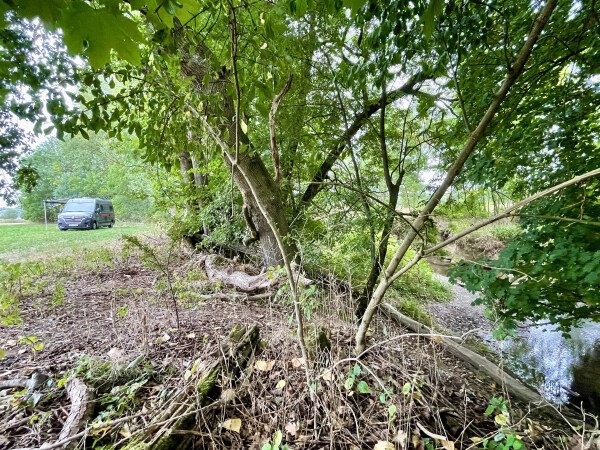 "Der Stellplatz befindet sich auf einem festen Wiesenboden und kann auch bei Feuchtigkeit befahren werden. Ich habe mich zu jeder Zeit auf dem Platz sicher gefühlt. Hier steht man zwar nicht in Sichtweite des Hofes aber in einer Sackgasse dahinter. Die Zufahrt erfolgt über die Teerstraße aus, über ca. 200 Meter unbefestigten Feldweg bis hin zum Platz. Man steht auf einer Wiese an einem kleinen Bach gelegen, bei einem netten und unkomplizierten Gastgeber. Der Stellplatz ist naturnah und sehr ruhig. Eine Feuerstelle und Holz gibt es direkt am Platz. Wer Wert auf ein gerades Stehen legt sollte seine Unterlegkeile einpacken. Am Bachlauf entlang gibt es einen schönen alten Baumbestand. Umringt von Feldern kann man einen schönen Weitblick genießen. Die nächsten Einkaufsmöglichkeiten für den täglichen Bedarf befinden sich in ca. 5 km Entfernung. Es gibt hier mehrere Stellplätze somit kann es sein das man einen Nachbarn bekommt und in Gesellschaft steht.