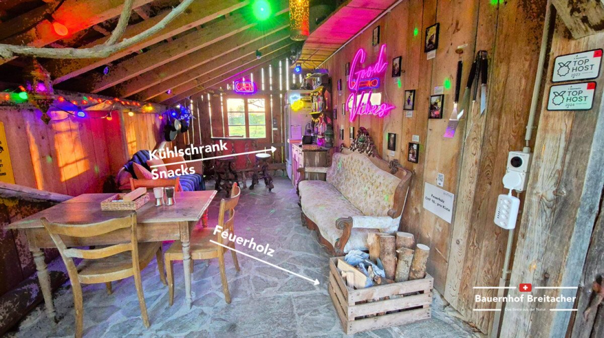 Ich würde es wirklich ein Vansite nennen, den neben Strom, WC, Feuerstelle, Sitzmöglichkeiten und mehr, auch eine kleine eingerichtete Bar. Es lädt zum Verweilen und Begegnen ein.
