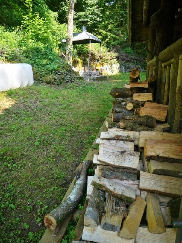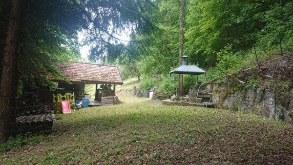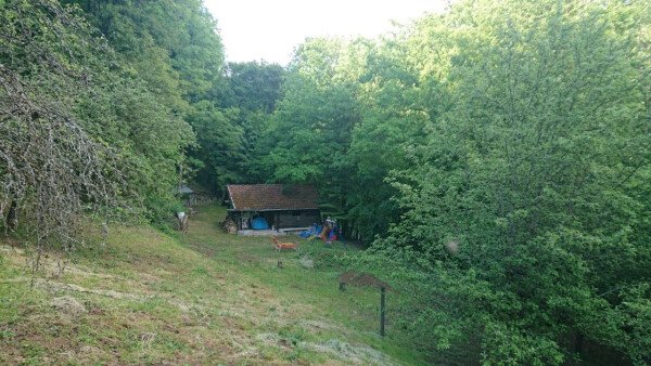Auf dem flachen vorderen Teil befindet sich eine Grillstelle und eine Holzhütte die gemeinschaftlich mitbenutzt werden kann. Parkmöglichkeit befindet sich direkt am Grundstück. Dennoch ist das Betreten nur zu Fuß möglich. Ein Befahren des Grundstückes ist somit nicht möglich.