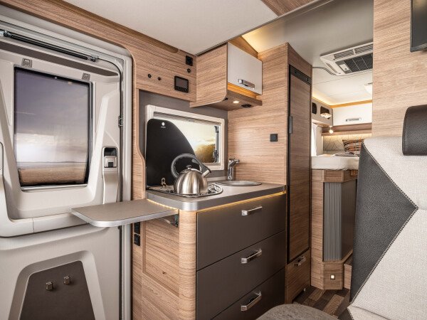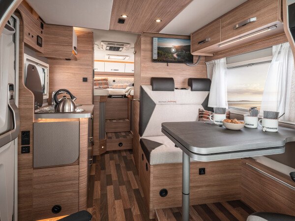 Wohnraumbatterie 75 Ah, Zuschalt-/Trennautomatik und Elektr. Ladeautomat für Aufbau- / Fahrzeugbatterie, CEE-Außenanschluss für 230 V mit Sicherungsautomat, FI-Schutzschalter, Bord-Control-Panel mit Angabe aller wichtigen Funktionen, Vorzeltleuchte, Überwiegend LED Beleuchtung im Wohnraum, 230V Steckdosen, USB-Steckdose, Frischwassertank 100 Liter, Abwassertank 95 Liter isoliert und beheizt, 2x 11kg Gas