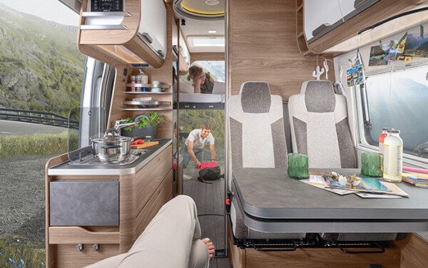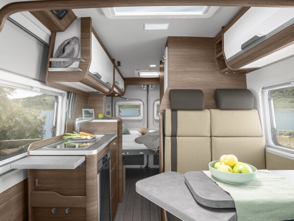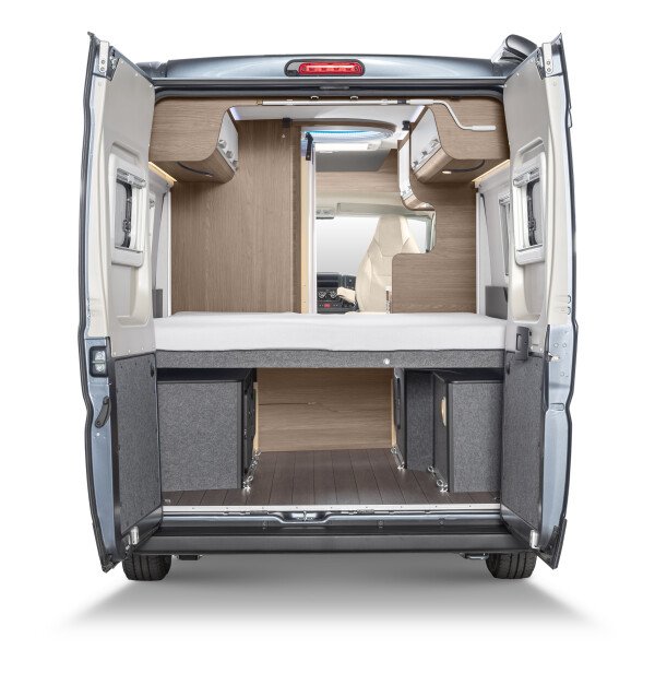 Fiat Ducato 150PS mit 2x Airbag, ABS, ESP, Hill Holder, Klimaanlage Fahrerhaus, Radio DAB+, All-in-One Navigationssystem mit Campingsoftware, Rückfahrkamera Lenkrad mit Bedienelementen für Radio, Tempomat – Cruise Control, Außenspiegel elektrisch verstell- und beheizbar, Original Fiat-Captainchair-Sitze mit Armlehnen - drehbar und höhenverstellbar, Elektrische Fensterheber vorne, Bereifung 16", Breitspurfahrwerk, Hinter-/Vorderachsstabilisator, Zentralverriegelung Fahrerhaus mit Fernbedienung, Pannen-Set, Anhängerkupplung 2to, LED-Tagfahrlicht